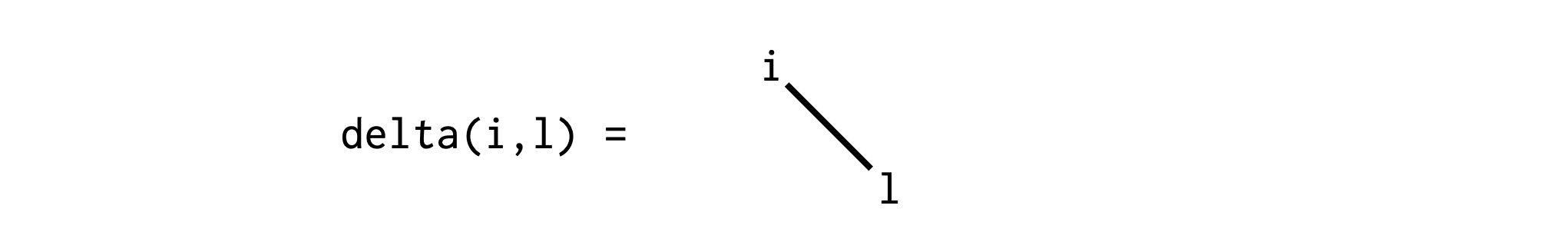 Viewed as an array, a delta tensor has all diagonal elements equal to 1.0 and zero otherwise.