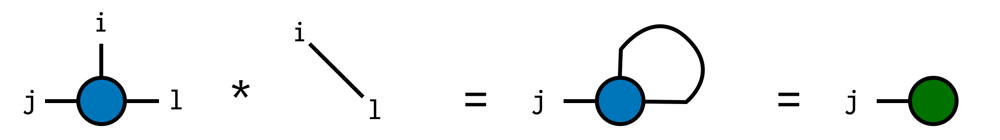 An important operation involving a single tensor is tracing out certain pairs of indices. Say we have an ITensor A with indices i,j,l: